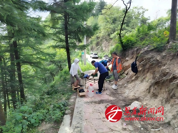 本网讯 近日,陕西省凤凰山森林公园景区内,露营游客激增。为保障游客安全及景区秩序,森林公园志愿者开展定期巡逻,提醒游客林区安全用火、文明旅游。(胡波 彭超 摄)