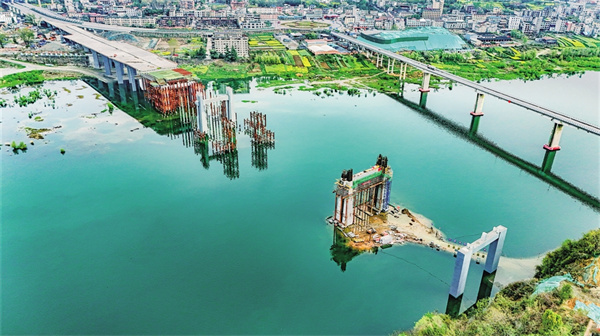 桥梁上部结构开始施工 安康新关庙汉江大桥“破水而出”