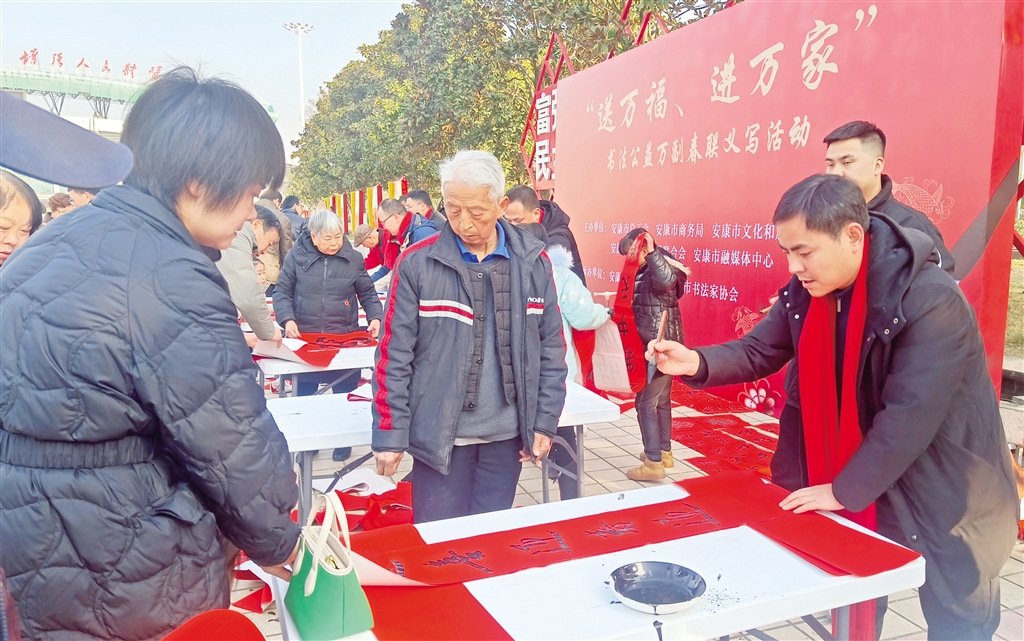 1月18日,“送万福、进万家”书法公益万副春联义写首场活动在安康城区金州广场举行,市书法家协会30余名书法家参加义写活动。活动现场,人头攒动,长桌一字摆开,……
