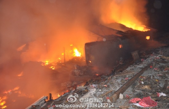 旬阳汉江烟花厂今晨4点发生爆炸起火。(图片来源:陕西省公安消防总队)截止早上9点25分,大火被扑灭西部网讯 记者今天(1月21日)从陕西省公安消防总队了解到,……