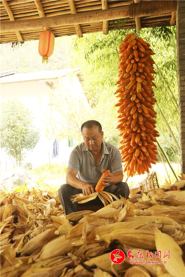 辛劳了大半年的村民,面对挂满庭院的金色玉米,掩不住内心丰收的喜悦和满意的笑容。