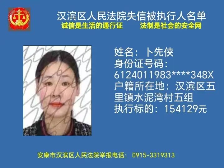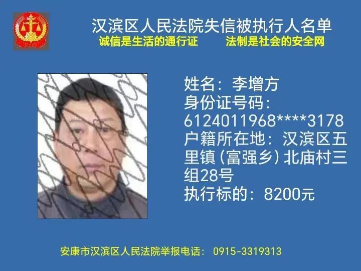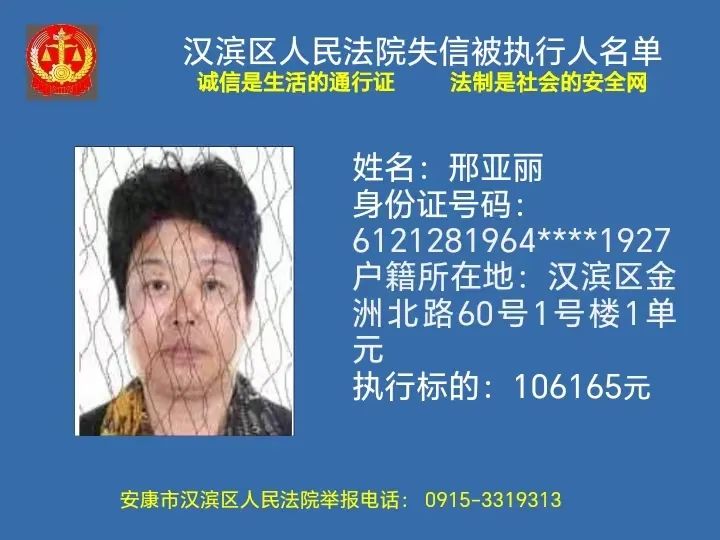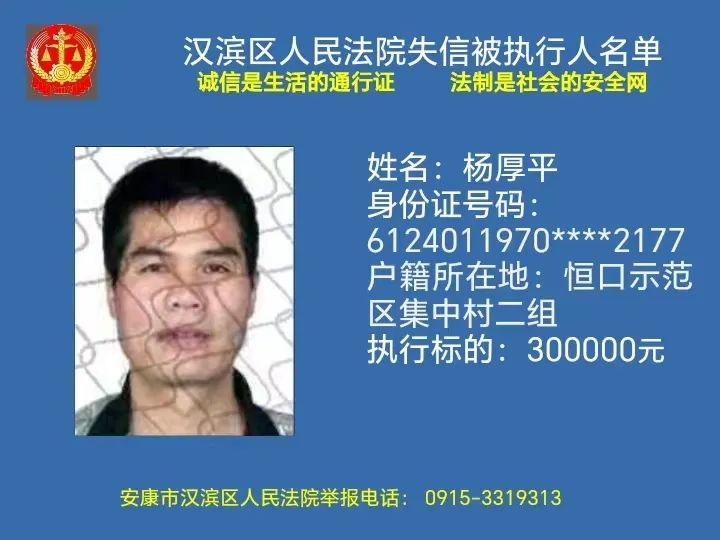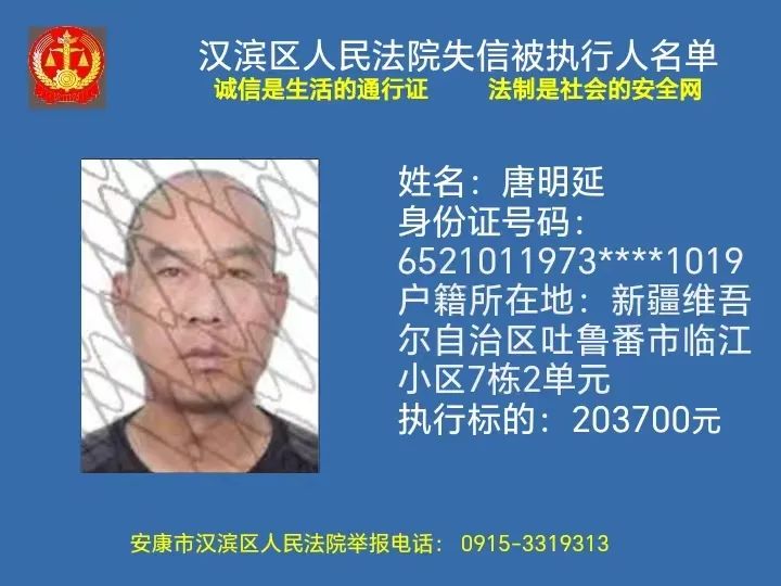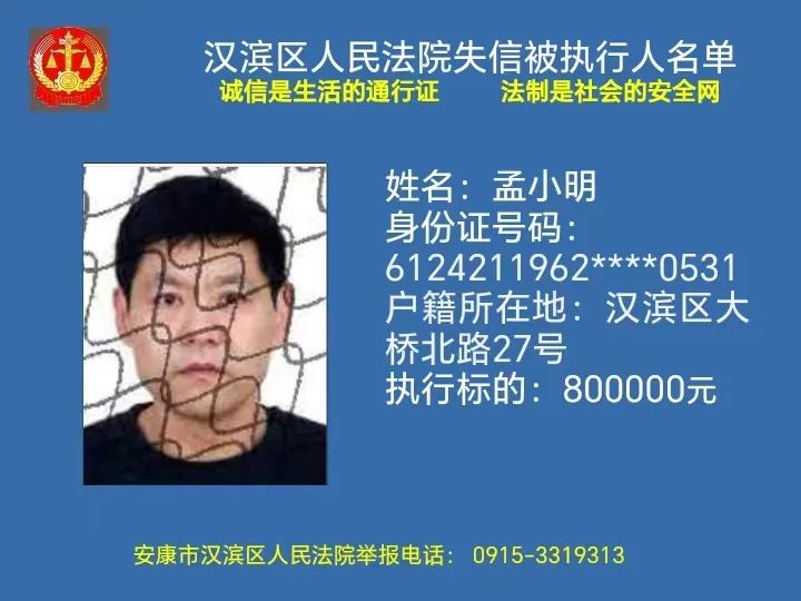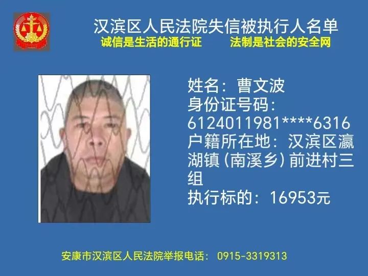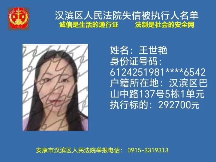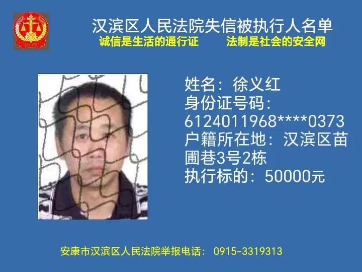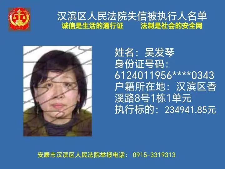 曝光失信 | 安康市汉滨区人民法院失信被执行人曝光名单(2023年第7期)