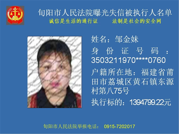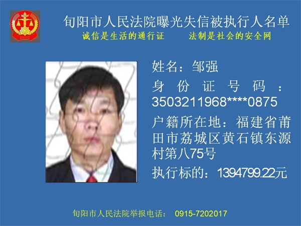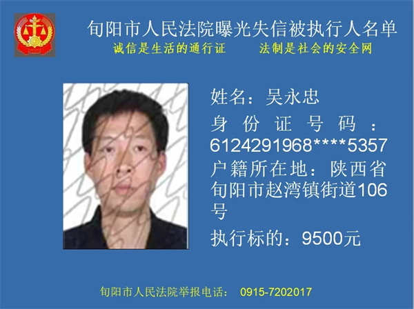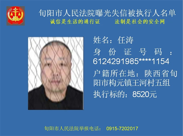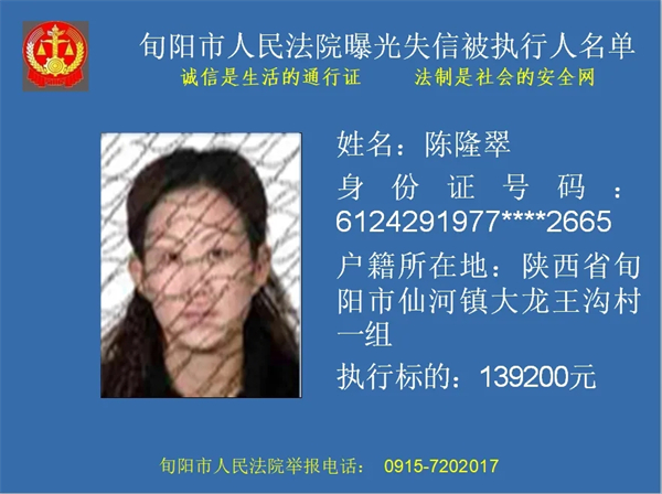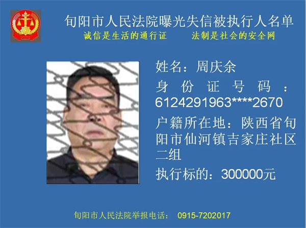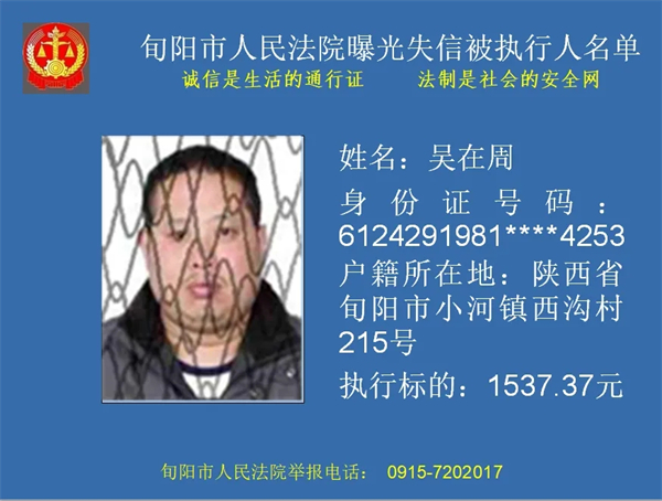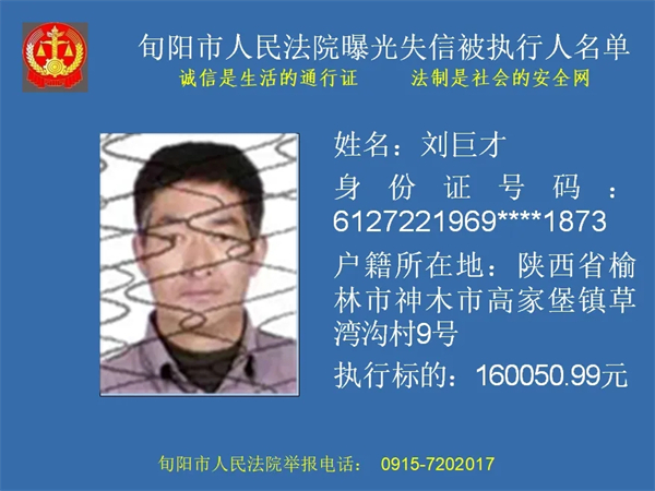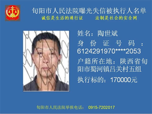 曝光失信 | 旬阳法院发布2024年第一期失信被执行人名单