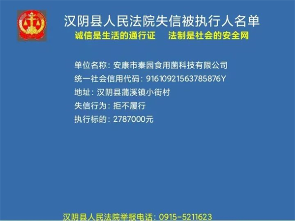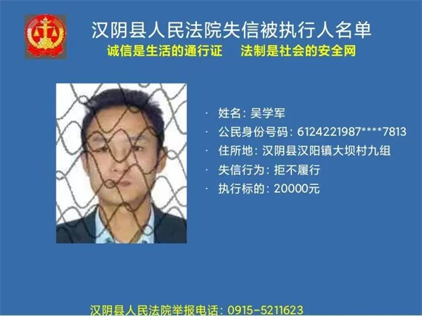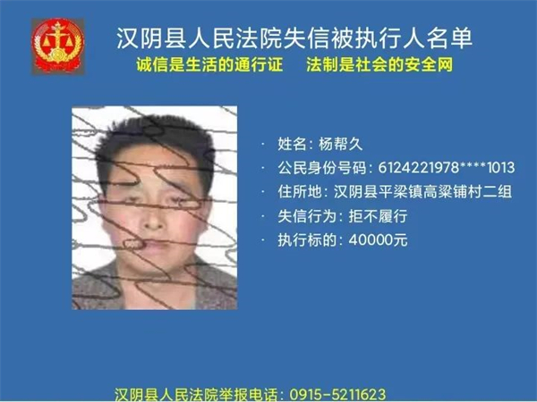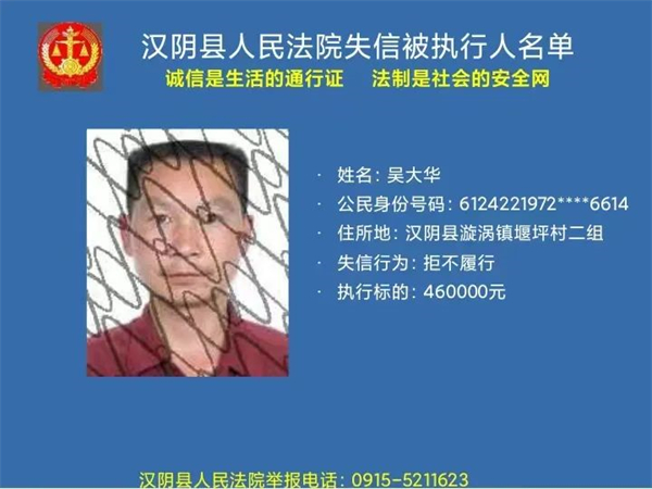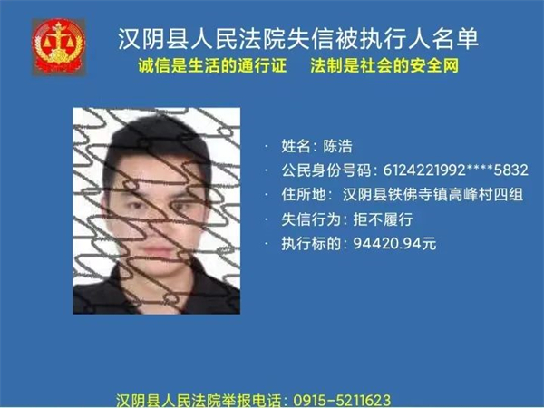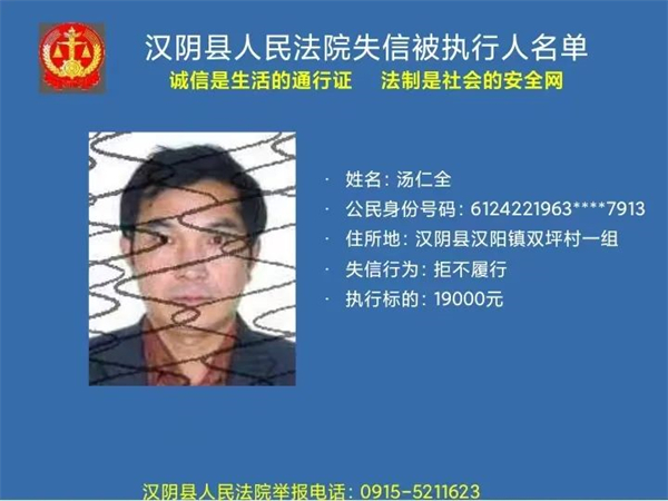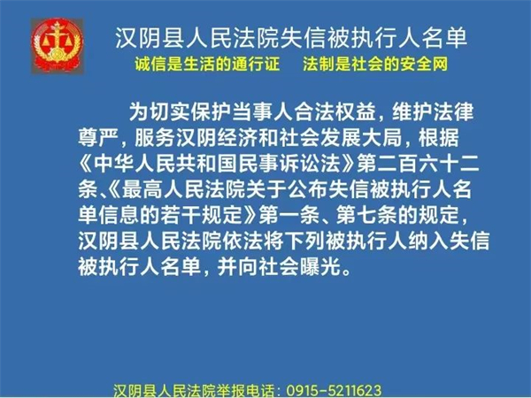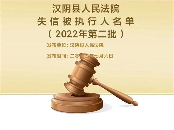 曝光失信 | 汉阴法院失信被执行人曝光名单 (2022年第二批)