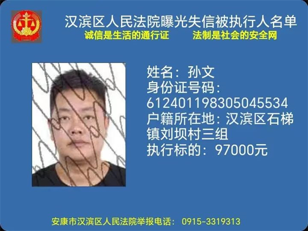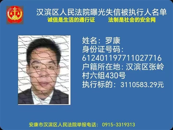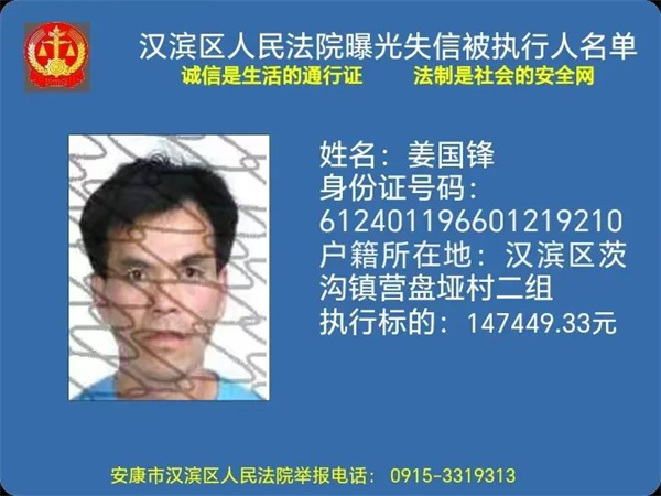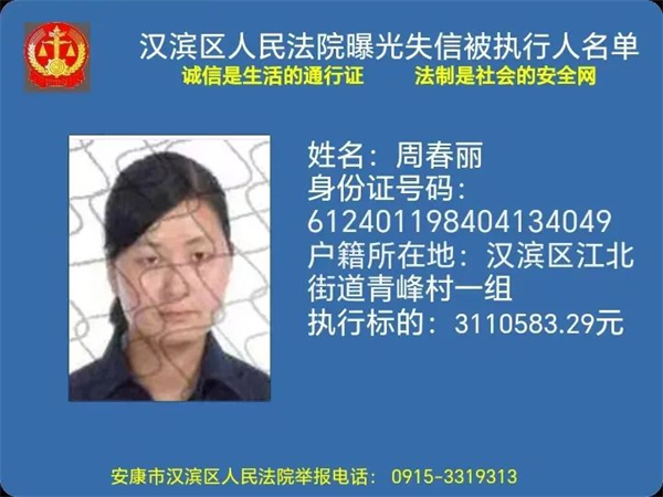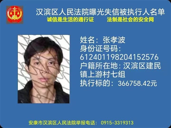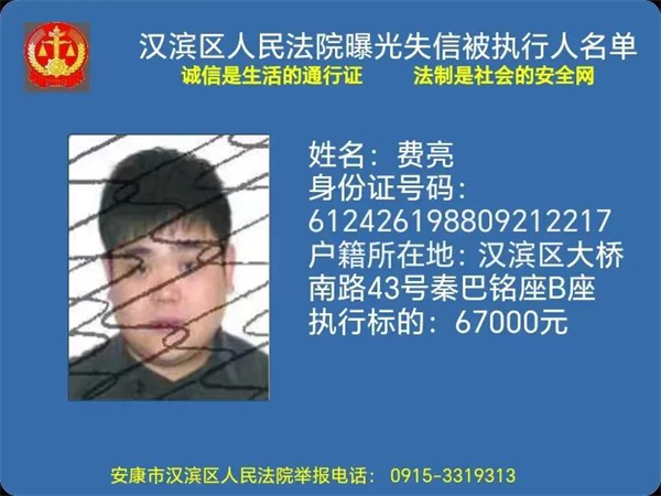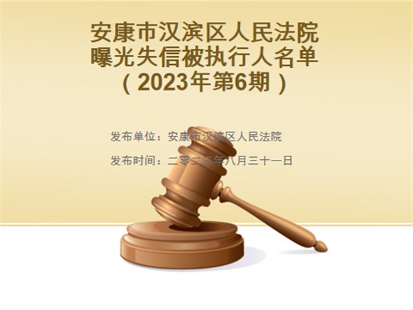 曝光失信 | 安康市汉滨区人民法院失信被执行人曝光名单(2023年第6期)