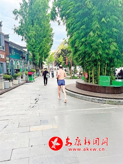 9月30日,一位市民着泳装跑过龙舟文化园,违反文明游泳相关规定,成为文明安康不和谐的音符。