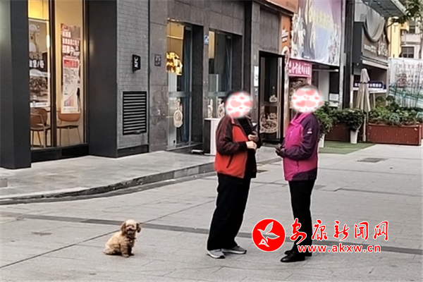 11月9日上午,大桥路鑫街口人行道上有市民遛狗不牵绳。(图文/周薇)f7S安康新闻网
