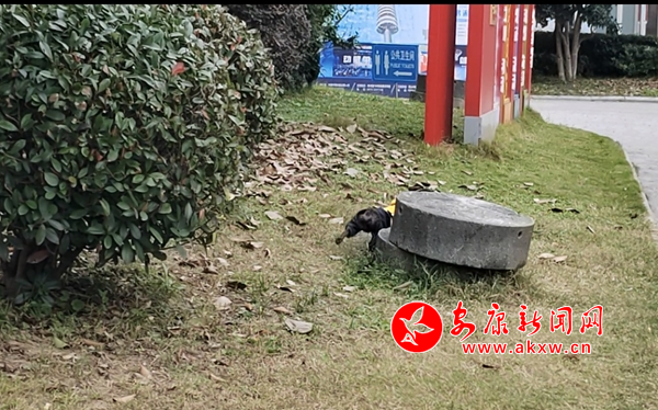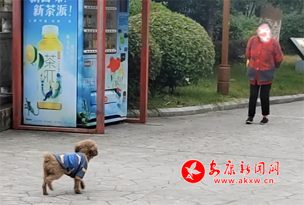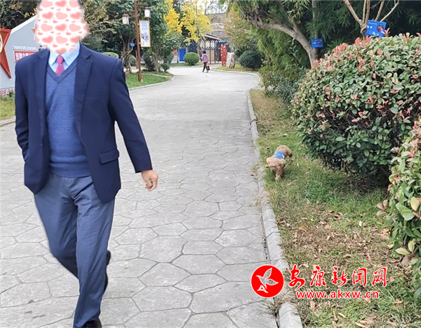 11月8日下午,兴安公园小广场内有市民遛狗未牵绳,宠物犬绿地随意便溺。(图文/周薇)f7S安康新闻网