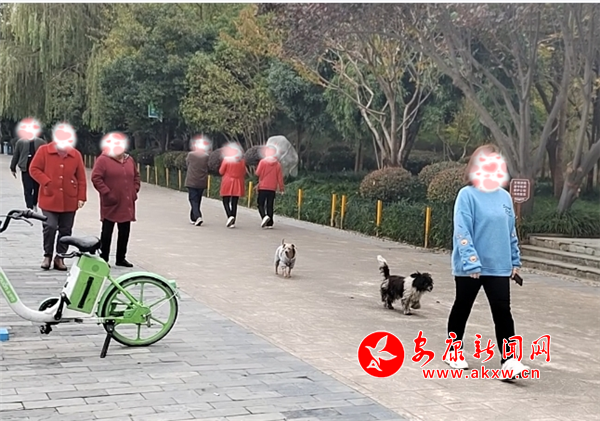 11月9日上午,汉江公园公园步道有市民遛狗未牵绳。(图文/周薇)f7S安康新闻网