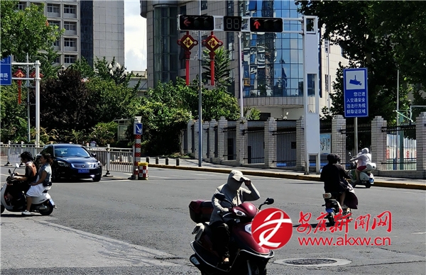 7月27日,在文昌路、赵台路附近,有市民骑电动车闯红灯现象。