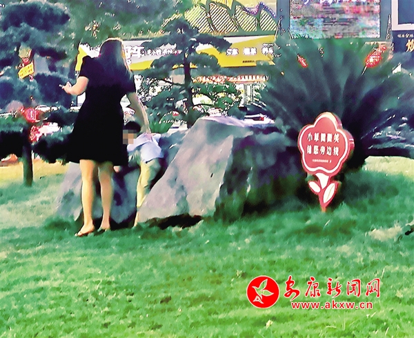 6月18日,有市民带着孩子在安康城区西津汉江大桥(三桥)南头街心绿地内玩耍,旁边就是“小草微微笑 请您旁边绕”的公益广告牌(图1)。不时还有摩托车、电动车从人行……