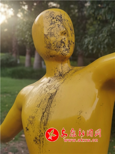 五一期间,安康高新区运动公园内,一处运动塑像遭人“抹黑”,污迹斑斑,有碍观瞻。(记者 许安)……