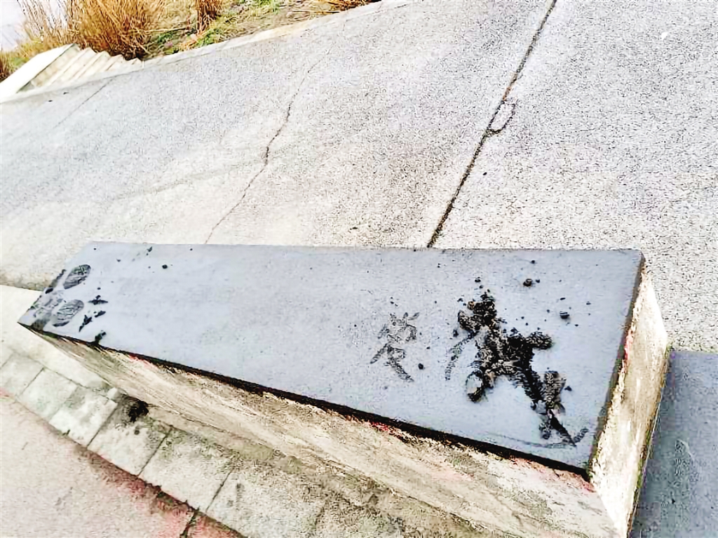 清晨跑步途径江边步道,一位施工的师傅和江滩公园保洁员说:“在挡护墩上刻字,太不文明了。”走到跟前,才知道是昨天下午刚刚施工结束的挡护墩,还未完全凝固的……