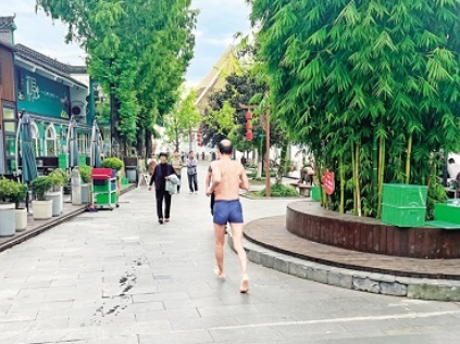 9月30日,一位市民着泳装跑过龙舟文化园,违反文明游泳相关规定,成为文明安康不和谐的音符。安文轩 摄……