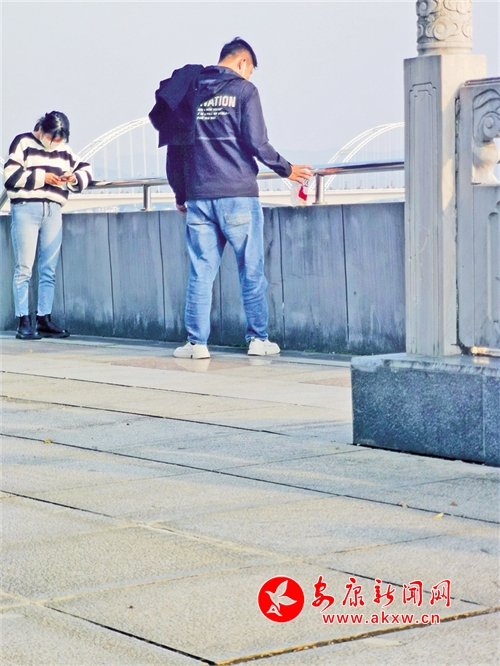 10月28日,市民在汉江大剧院附近游玩,随地吐痰的现象依然时有发生。记者 潘润生 摄……