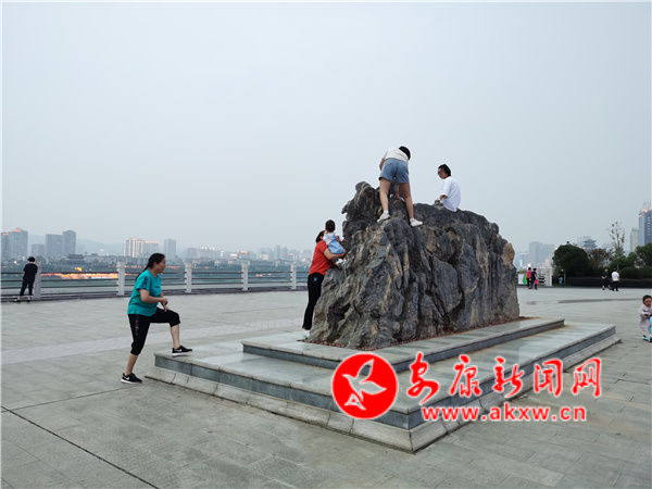 不文明旅游曝光|暑假期间,香溪洞景区:小孩站在景观石上照相