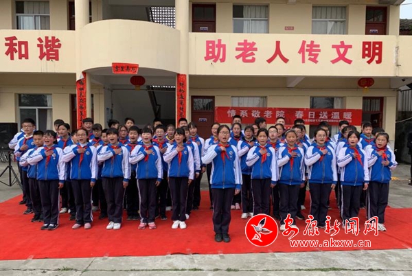 50余名师生带着粮油、桌椅、奶粉等各类物资和精心准备的表演,前往关庙敬老院为老人们送上问候和祝福。婉转悠扬的诗歌朗诵、悦耳动听的独唱、慷慨激昂的大合唱等各类精彩表演层出不穷,引得现场老人们阵阵掌声,孩子们不仅给老人们带来了各类物资,也带来了欢声笑语。