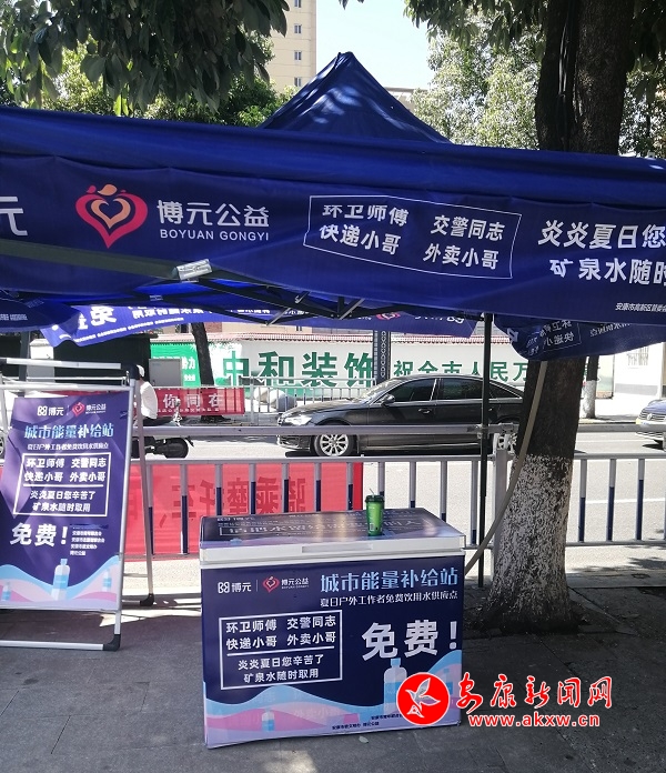 据了解,此次活动从7月22日陆续展开,至8月31日结束,爱心冰柜投放8个地点,分别是博元幸福城售楼部、高新管委会门口、高新幼儿园门口、江北安康滨江大道(扶贫开发局对面)、影剧院、大桥路(信合广场对面)、安康中学(卫校十字)、大千印象城,矿泉水每天每个点投放8箱左右。
