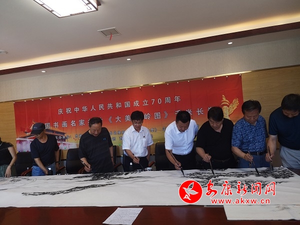 本网讯(实习记者 雷文钰)8月10日,全国书画名家共绘《大美秦岭》千米长卷活动走进安康,党建画院张文祥院长与安康众多书画名家共绘《大美秦岭》千米长卷之安康卷。