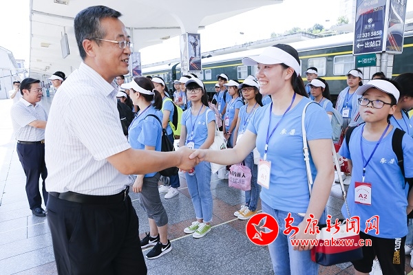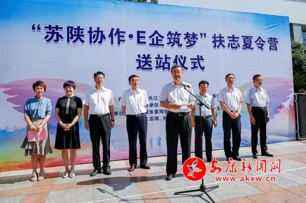 本网讯(记者 张世虎)8月12日下午,“苏陕协作·E企筑梦”扶志夏令营送站仪式在安康火车站举行,来自我市的30名优秀学生和5位老师踏上奔赴南京列车,将开启一段美好的研学之旅。省委网信办副主任黄永宏,安康市委常委、宣传部长罗雪剑出席并讲话。