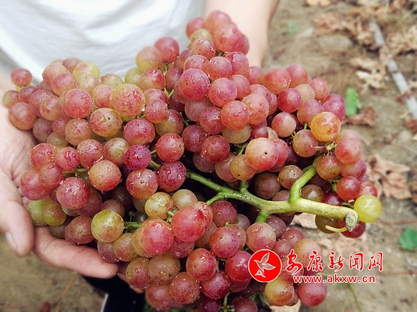 “5H葡萄是我们农场的主打品牌,皮薄无核,甜度高。”李华锋在园里修剪着葡萄藤,并递来两串葡萄让记者品尝,记者随手摘下几颗品尝,发现葡萄皮薄肉厚、香甜可口。