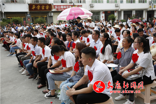 72名本科上线学生和家长佩戴着大红花端坐在广场接受全镇乡亲们的祝福。老县镇党委为金榜题名的学子颁发荣誉证书和奖金,同时,学生家长在“不收升学礼、不办升学宴”承诺签名墙前,签下承诺签名。在感恩父母环节,父母与孩子深情相拥,他们真切的语言使整个会场充满爱与感动。