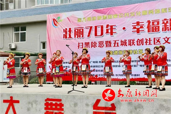 本次活动由市创建办、市文旅广电局、市财政局、市行政审批局、市公安局、安康日报社、安康电视台、江北街道办主办,旨在庆祝新中国成立七十周年,宣传新民风建设和助力“扫黑除恶暨五城联创”工作,用文艺演出的形式来丰富群众精神文化生活,将文化、健康、法制、环保等知识送到社区群众身边,进一步为新一轮城市创建工作营造浓厚氛围。