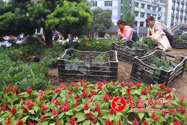 目前,“十一”鲜花装扮工程正在紧张进行中,预计在9月30日前全面完工。