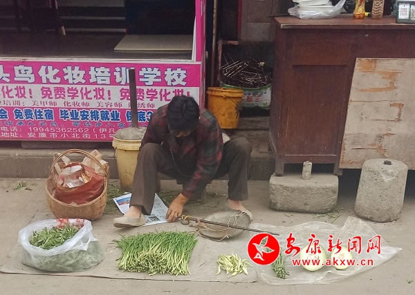 售卖自家种的蔬菜的张奶奶