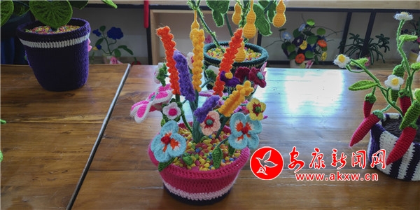 “我们这儿年龄最大的学员胡文芳已经72岁了,学了编织后,感觉一天生活比原来有意思多了。”杨远珍说起自己的学员如数家珍,“68岁的闫春梅是一名退休教师,起初学不会,急得直冒汗,我就手把手教她,她也天天练习,现在一年可以钩四五十件作品。”