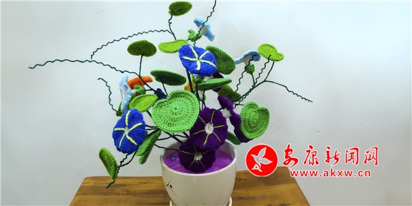 “这朵百合,我只要半个小时就绣好了。”64岁的党员杨远珍指着桌子上惟妙惟肖的针织品向记者介绍,“我八九岁时就开始摸索着用大别针钩花,绣了一辈子的花了。”