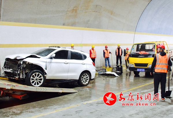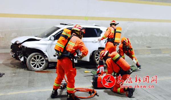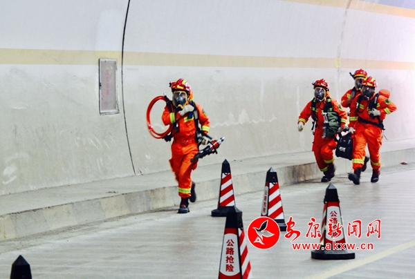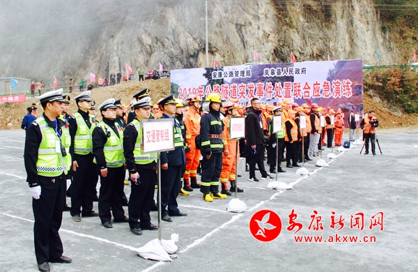 本网讯(记者 张乔)“报告,接110指令,541国道151KM+000M处柏枝垭隧道内发生一起小轿车与危险化学品运输车发生追尾碰撞交通事故,可能发生危化品泄露泄露、燃烧爆炸和人员伤亡”。 为提高国省干线公路隧道突发事件应急处置能力,检验干线公路突发事件应急预案可行性,11月22日,安康公路管理局2019年度干线公路隧道救援应急演练在G541线K151+000岚皋县柏枝垭隧道举行。