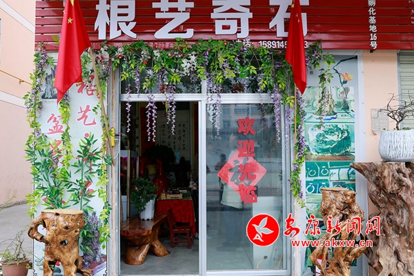就这样,姚常林搬进了新家,他的根艺奇石店也开张了。都说雕刻艺术讲究“七分天成,三分人工”,作品要根据树根、山石的自然形状进行创造性的加工,凭借着慧眼和巧手,各具形态的树根、木头在姚常林手上变成一件件精美的艺术品。