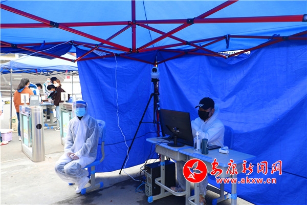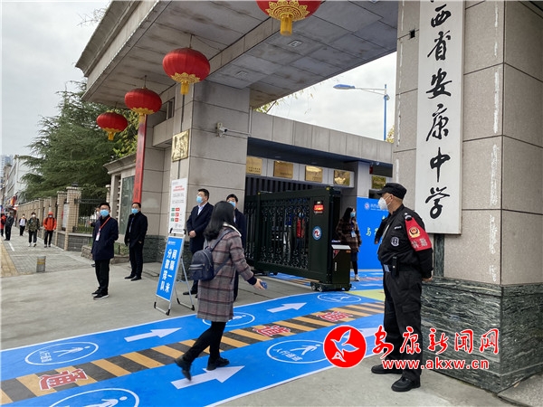 记者在安康中学校园外观察到,每个人都戴着口罩,每隔几步都会有工作人员和老师对学生进行引导,帮助学生完成相关入校流程,提醒学生彼此距离尽量保持在一米以上,保持安全距离,确保进校有序安全。在校门口内,摆放有热成像红外线人体测温仪,每个进入校园的同学体温数据会自动显示在监测人员的电脑上,体温是否异常,一目了然。对于体温有异常的,工作人员会拿额温计在进行二次测量,确保不漏一人。