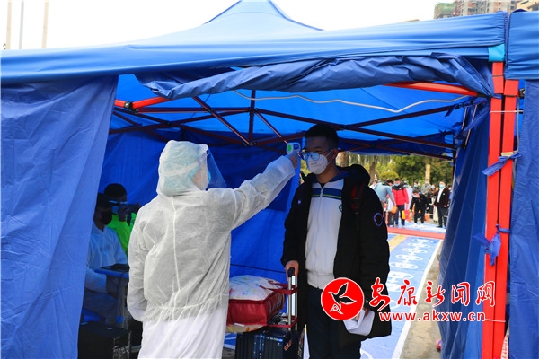 本网讯(记者 张世虎 李隆均 实习记者 雷文钰)“你的体温正常,请有序进入校园。”在经历了漫长的假期后,3月30日,安康中学1000余名高三学生错时分流走进校园开学复课,沉寂已久的校园又充满了暖意和朝气。