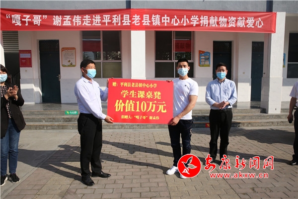 4月30日,2004版电视剧《小兵张嘎》中“嘎子”的扮演者谢孟伟,带着爱心和希望,来到了平利县老县镇中心小学,为那里的孩子们送去了价值10万元的课桌和板凳。“太好了,五一收假就可以看到新桌椅了”,参加捐赠仪式的学生代表说。
