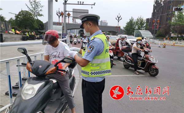 本网讯(记者 李俊 实习生 郑晓薇) 为有效预防和减少道路交通事故对驾乘人员的伤害,消除交通安全隐患,保障广大群众出行安全,公安部交管局提出的“一盔一带”安全守护行动在全国各地展开。为深入了解安康“一盔一带”施行情况,6月8号上午,记者来到了汉滨公安分局交警大队江南中队。