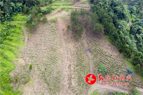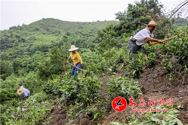 在桥河林场,一株株茶树深深地扎根在60度的山坡上,这是上世纪70年代种植的老茶园,汉滨区德润天然富硒农产品开发有限公司的王彪正带领茶农们在修整,将建成标准化的示范茶园。不同于和农户逐个签订土地流转合同,德润公司直接与桥河村签订协议,把撂荒的3000亩林场土地全都承包下来。