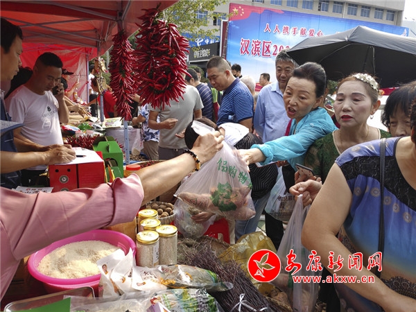 本网讯(记者 张世虎 通讯员 张昊 吴亚君)为深入贯彻落实中省市消费扶贫工作部署要求,进一步提升汉滨全区消费扶贫工作质量水平,9月15日,汉滨区“消费扶贫月”活动启动仪式暨扶贫产品采购活动在汉滨区中心广场启动。来自汉滨区各级帮扶单位负责人,各镇办主要负责人,汉滨区消费扶贫领导小组各成员单位主要负责人,贫困村第一书记等共计1300余人参加活动。