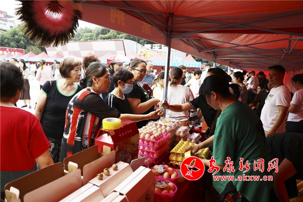 汉滨区中心广场人潮涌动,27个镇(办)170余家企业精心选择了粉条、辣椒酱、土蜂蜜、豆腐乳、茶叶、核桃油等300余种特色农副产品进行展示售卖,5家毛绒玩具企业生产的上百种毛绒玩具也在现场纷纷亮相。来自市内外的客商、群众纷纷在展台前选购,现场热闹非凡。