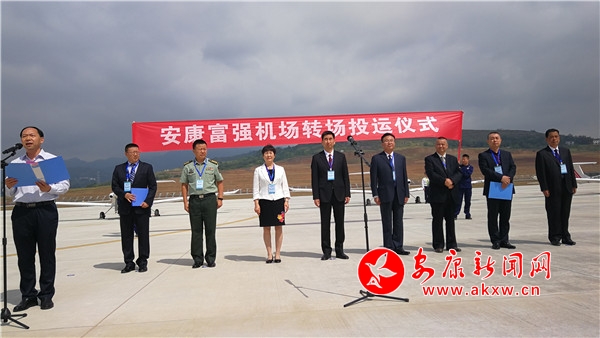 本网讯(记者 张世虎 实习记者 雷文钰)9月23日,安康富强机场举行转场投运仪式,16架通航飞机从安康原来的五里铺机场转入富强机场,市委常委、副市长刘建平宣布安康富强机场转场完成、机场正式投运。至此,安康迈入航空新时代,秦巴儿女翱翔蓝天的“天路”顺利贯通。