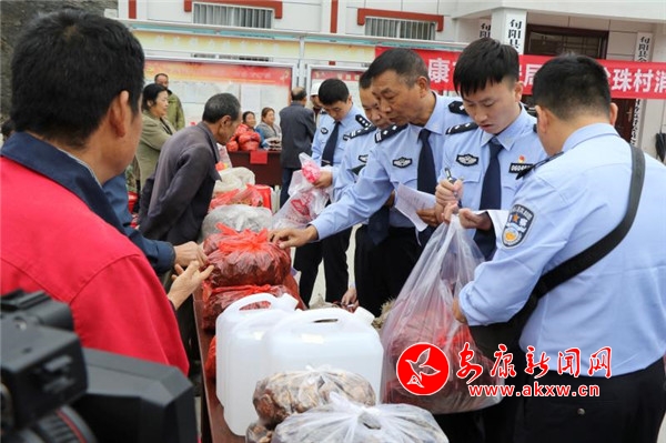 活动现场,张维护亲切询问农户收入情况和农产品销售情况,并带头购买农产品。市公安局机关广大民(辅)警争做爱心帮扶先锋,积极购买扶贫产品。当天,珍珠村80余名农户准备的生猪、牛羊肉、土豆、木耳、香菇、自酿酒等20多种农产品被抢购一空,销售总额达4.5万余元。