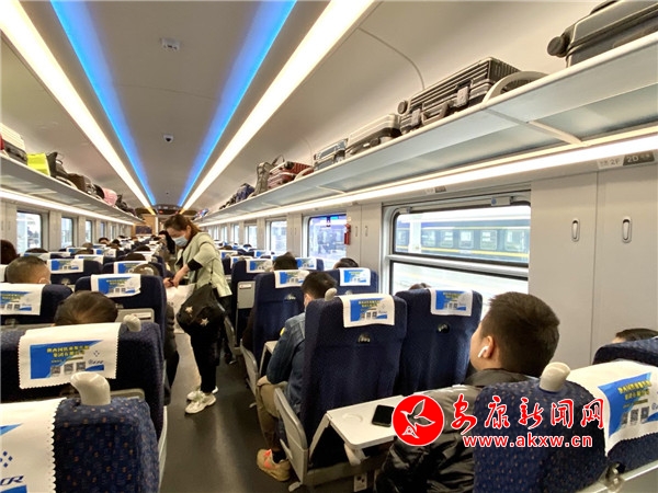 对于复兴号绿动车的时速,旅客邹先生表示很满意,谈及今天起复兴号绿动车每天加开一对,他觉得这是非常贴心及时的举措,满足了他这种出行需求多的人群,“这个动车很快,比以前能节省一个多小时,大大提升了我们的乘车体验感。而且今天起又多开了一对,这样以后我们乘车时间选择也更多啦。”
