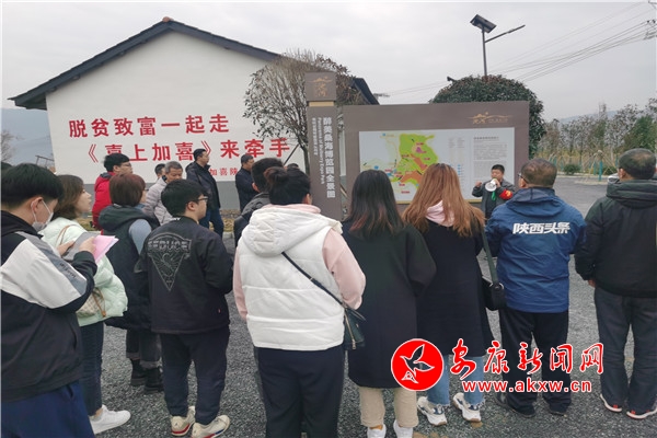 随后采访团来到宁陕县的八亩村和海棠园村。八亩村通过“支部+旅游景区+贫困户”、“支部+移民安置社区+产业基地+贫困户”、“ 支部+安置社区+社区工厂+贫困户”的模式,将景区、园区、工厂、社区联动融合发展,辐射带动八亩村贫困群众持续稳定增收,形成了“山上建景区,山间建园区,山下建社区”的八亩模式。海棠园村通过创新“支部+合作社+贫困户”的发展模式,成立海棠园股份经济合作社、海棠园农业发展有限公司,整合各类资金350余万元,支持农产品、中蜂养殖等3个农民专业合作社和林麝养殖园区发展,组织发展种植生态水稻100余亩、养蜂1000余箱、糯玉米60亩,养殖林麝300余只。