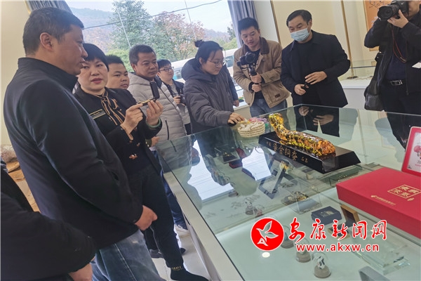 采访团一行首先到达安康市石泉县池河镇,该镇着力围绕“鎏金铜蚕”打造“金蚕文化。其中,“鎏金铜蚕”文创产品展销中心是陕西历史博物馆授权挂牌的全省首家县级鎏金铜蚕文创产品展示推广中心,也是国内首家以鎏金铜蚕文化为内核打造的文创展销平台。明星旅游村属于金蚕小镇打造的农桑体验版块,该村依托蚕桑产业和鎏金铜蚕文化,积极探索“农旅融合”“文旅融合”模式,大力开发乡村旅游。目前,已累计投资8000万元,建成桑园6000余亩,种植各类桑品种1000余种;建成桑品种博览园、果桑采摘园、特色民居、桑海小木屋、农家乐、空中漂流、山地摩托、天空之镜、桑海酒吧等一大批旅游体验项目,并配套建设了桑栖旅游环线、供水系统、旅游公厕、生态停车场、标识导视、乡村大舞台等公共服务设施。