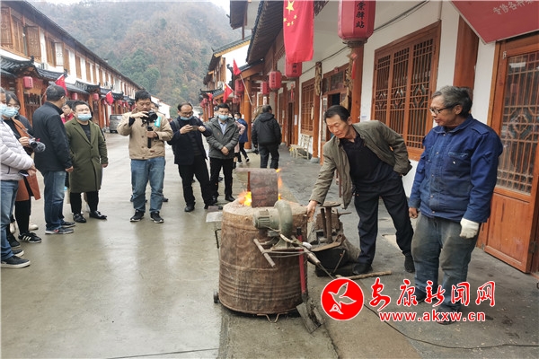 采访团来到了石泉县后柳镇中坝村作坊小镇,该镇村围绕传统民俗体验、农耕文化展示、休闲娱乐互动三大版块,打造出独具陕南农耕文化的特色小镇。据了解,中坝作坊小镇按照“中坝建作坊、周边建园区、产品供小镇”的思路,通过公司化运作,辐射带动中坝、柏桥、长安、汉阴沟、磨石等8个村600余户群众发展订单农业,其中带动贫困群众168户,600余人依托中坝作坊小镇实现就业创业,人均年收入均达到2万元以上,实现了稳定脱贫和持续增收致富。