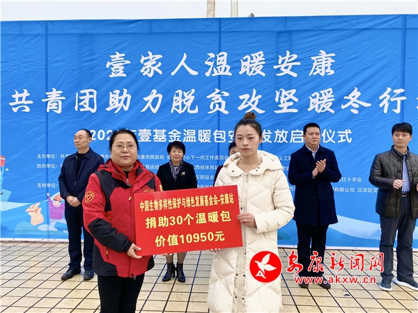 本网讯(记者 李隆均)11月28日上午,壹家人温暖安康·共青团助力暖冬行动暨2020年壹基金温暖包安康发放启动仪式在金州广场举行。