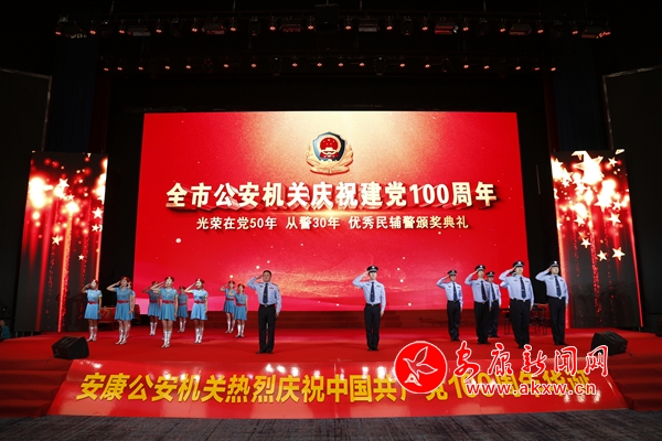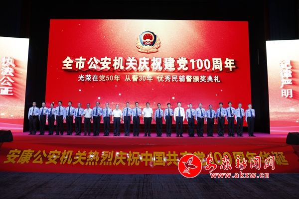 本次活动旨在全面展示全市公安队伍教育整顿成果成效,大力弘扬公安英模精神,宣传表彰队伍中涌现出来的先进典型,凝聚警心、鼓舞士气,激发广大民警全力以赴做好保安全、护稳定、抓改革、促发展各项工作热情。活动分为安宁康泰、牢记使命、不忘初心三个篇章,一曲曲高昂的赞歌,一幕幕鲜活的画面,一个个感人的故事,生动再现了中国共产党建党100年来,矢志践行初心使命,一路披荆斩棘、筚路蓝缕,锚定奋斗目标,创造辉煌开辟未来的壮丽诗篇;形象展示了安康公安机关和广大民辅警牢记初心使命,服务中心大局,扎实推进党史学习教育和公安队伍教育整顿,忠诚履职,砥砺奋进的良好形象。活动中,与会领导向优秀民辅警颁发了奖杯,向“光荣在党50年”代表颁发了勋章,向“从警30年”代表颁发了纪念章。