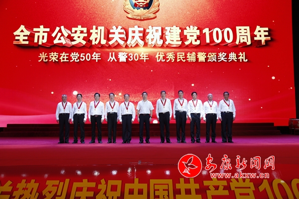 本网讯(实习记者 赵漪湉 通讯员 周瑞儒)党旗引领警旗红,训词指引新征程。6月23日,安康市公安局举办了全市公安机关庆祝建党100周年暨“光荣在党50年”“从警30年”“优秀民辅警”颁奖典礼,省政法队伍教育整顿第九指导组副组长王亚利,市委常委、政法委书记王安中,副市长、市公安局党委书记、局长张维护,省第九指导组公安机关现场指导专班负责人杨文会等出席颁奖典礼。