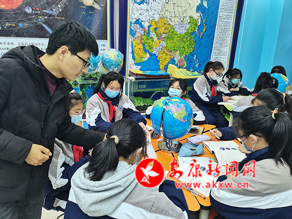 在地理教室中,地理教师孔杯正在为学生们讲解课程内容“我们生活的大洲——亚洲”。但他没有选择常规授课方式,而是通过设置关于冬奥会的问题,启发学生开展思考。北京为什么可以承办冰上项目?非洲为什么不适合举办冬奥会?学生们齐齐开动脑筋,从多方面踊跃回答问题。老师表示,孩子们寒假期间最关注的冬奥会也是优质课程资源,通过结合冬奥会,能够产生暨契合时代焦点,又戳中师生关注点的生动课程。